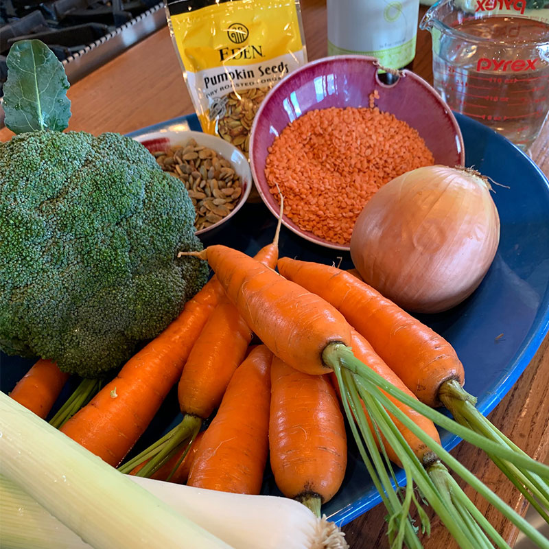 Keep a packet of pumpkin seeds in your pocket or purse (Eden Foods is my favorite brand). Top soups, salads, smoothies, quinoa, or any dish with seeds, and it will look prettier—they’re the finishing touch on my ORANGE LENTIL SOUP.